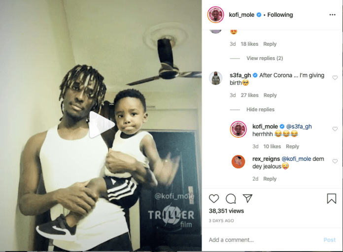 She said this as a comment under one of Kofi Mole’s recent posts where he posted a video of himself and son.