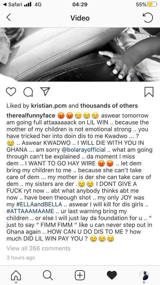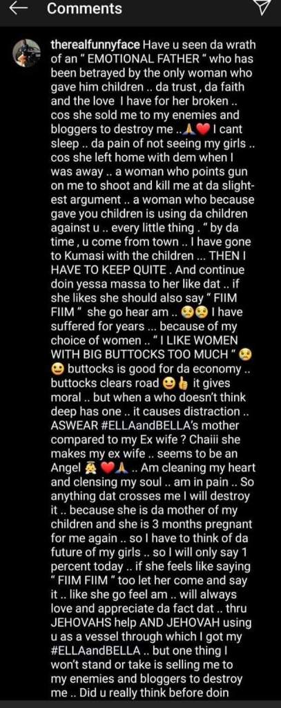 We got wind of the information after Ghanaian lawyer and blogger based in the UK, Chris Vincent Agyapong had a private conversation with Funny Face to ascertain the real catalyst behind his outburst.