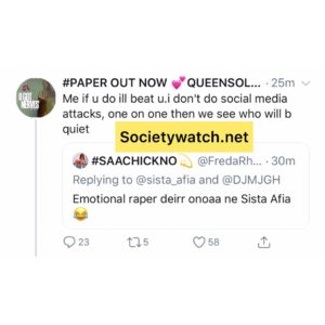Since when did Sista Afia not do social media attacks? Ah well, let’s just keep our fingers crossed and wait for the day Sister Afia will finally meet and beat Freda Rhymz.