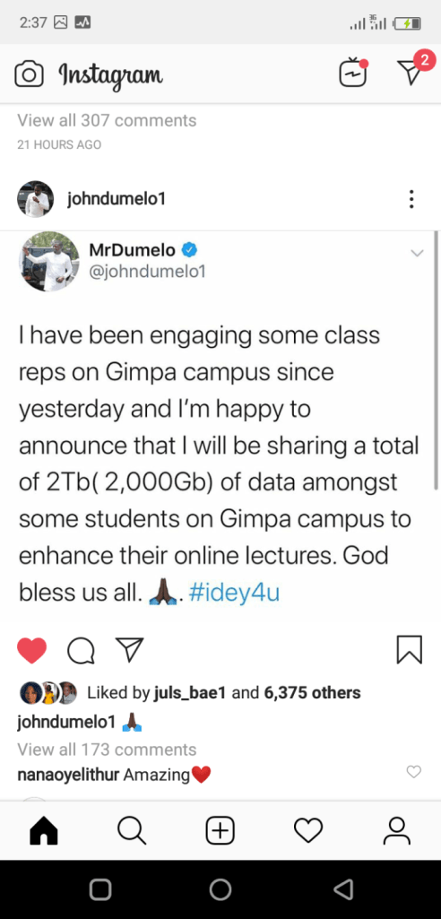 Well John Dumelo in his quest to help some of these students lessen their burden offered to provide them with data bundles. He posted this on Twitter handle.