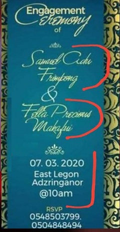 However, per the information on the flyer, the two will be getting married on the 7th of March, 2020 at East Legon, Adzringanor.